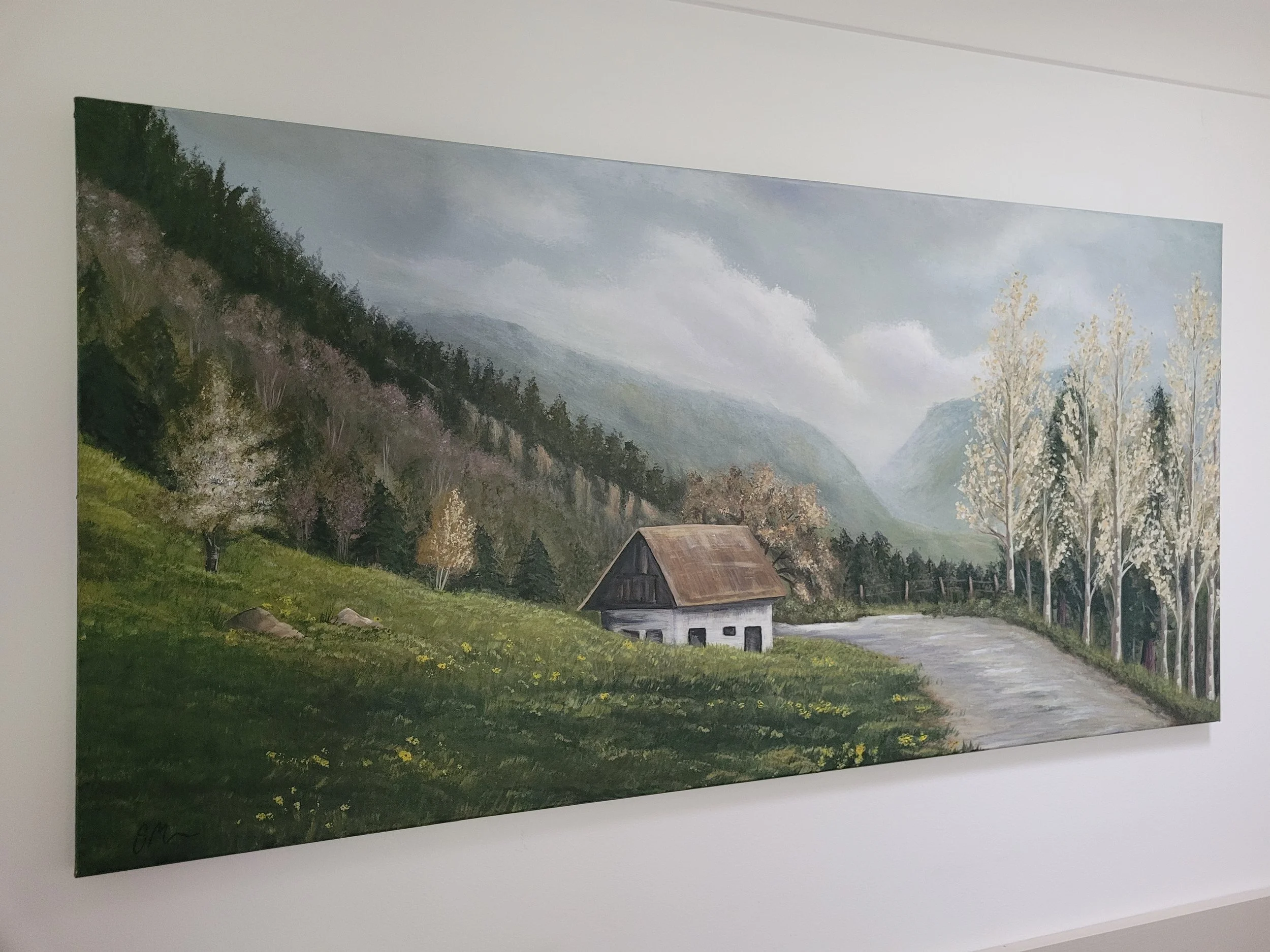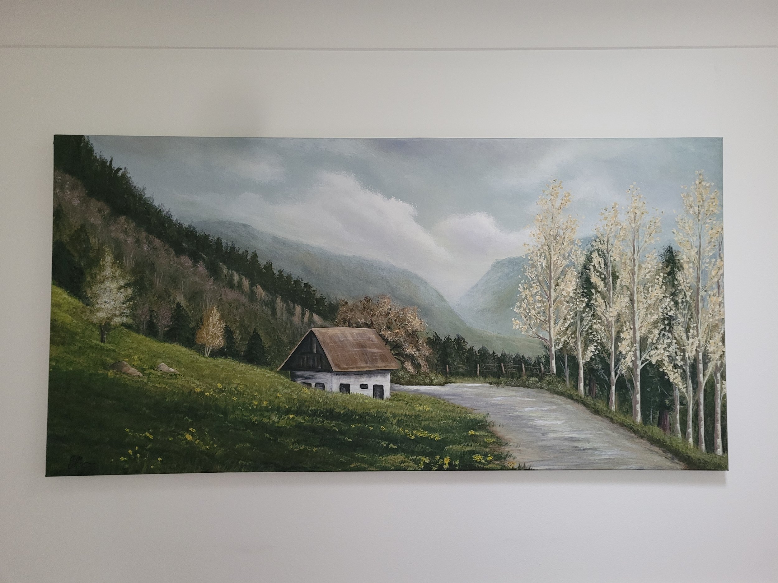 This painting was inspired by a photo I took in Switzerland, we drove for hours up this windy mountain untill we reached the top, it made for some awesome photos along the way.